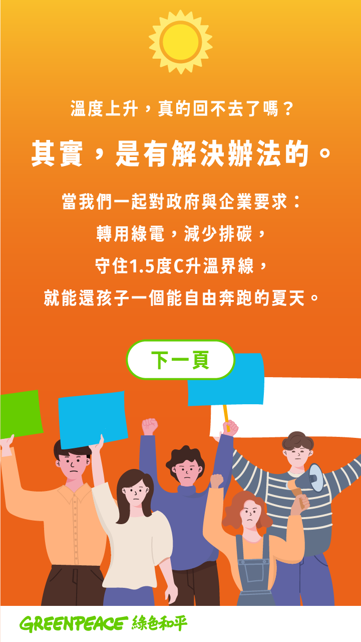 • 僅限使用於本次高溫議題倡議活動相關之倡議(記者會、陳情)、教育或公開展示等網路及實體用途。使用期間自您拍照上傳之日起至2028年12月31日止。